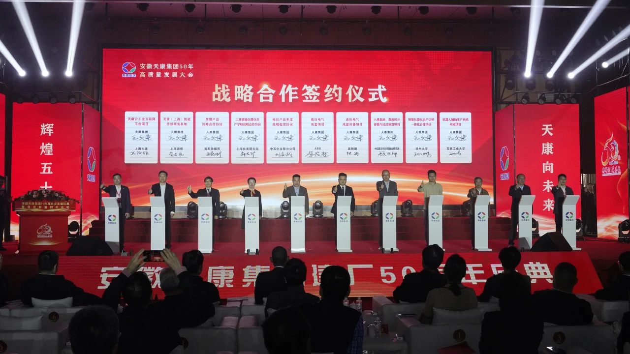 ABB公司、中石化金陵分公司、施耐德公司、上海儀表研究院、中國(guó)醫(yī)學(xué)科學(xué)院輸血研究所、南陽(yáng)防爆所、揚(yáng)州大學(xué)、上海南橋、安徽工業(yè)大學(xué)、上海七通公司代表在會(huì)上分別與安徽天康集團(tuán)簽署了“戰(zhàn)略合作協(xié)議”。