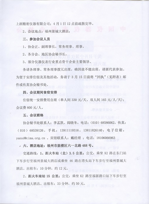 關于召開中國儀器儀表行業協會第六屆五次理事(擴大)
