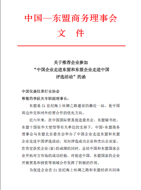 附件:2017年度中國企業走進東盟 評選活動推薦表