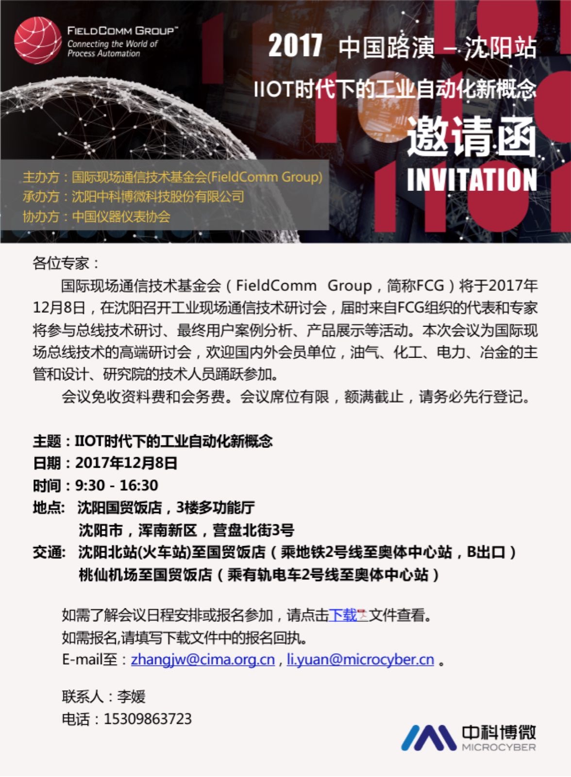 “IIOT時代下的工業自動化新概念”2017 FCG中國路演–沈陽站會議通知