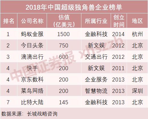 2019年5月,長城戰(zhàn)略咨詢發(fā)布的《2018年中國獨角獸企業(yè)研究報告》(以下簡稱《報告》)指出,2018年中國獨角獸數(shù)量首次突破200家,達到202家,總估值7441億美元,平均估值36.8億美元。