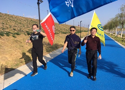 活動(dòng)以競賽形式分為三組,每隊(duì)約6人。伴隨著湛藍(lán)的天空,宜人的美景,大家一路上精神飽滿、歡歌笑語,邊走邊交流。湖面波瀾蕩漾,波光粼粼,岸邊丹桂飄香,水中魚兒不時(shí)躍出水面,仿佛在呼應(yīng)大家的熱情。身邊隊(duì)友的加油鼓勁讓整個(gè)行走過程歡快盡興,既感受到運(yùn)動(dòng)帶來的快樂和濕地秋景的美好,又倍感團(tuán)隊(duì)的溫暖,增進(jìn)了友誼,加強(qiáng)了協(xié)會(huì)大家庭的凝聚力。