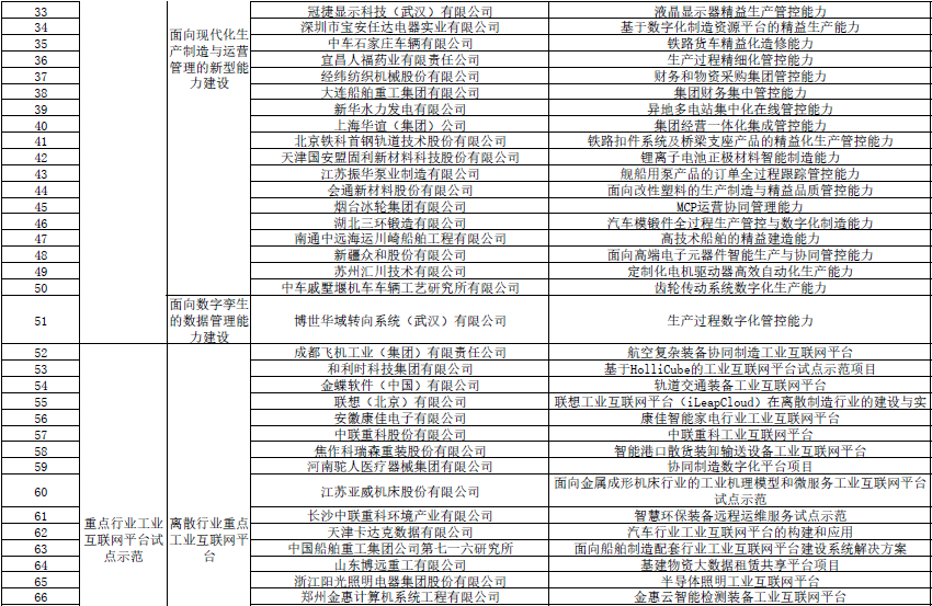 圍繞深化制造業與互聯網融合發展,本次核定的名單聚焦在兩化融合管理體系貫標、重點行業工業互聯網平臺、信息物理系統(CPS)、工業互聯網大數據應用服務、工業電子商務、中德智能制造合作六個方向。