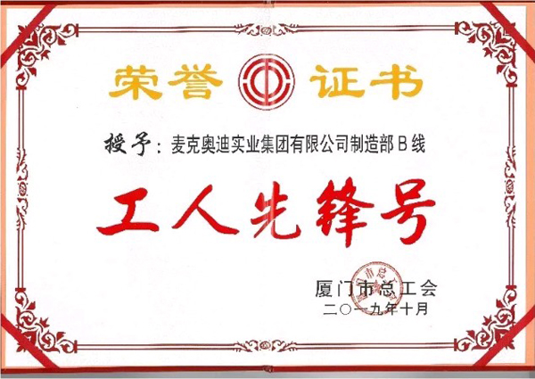 麥克奧迪實業集團有限公司制造部B線榮獲“廈門市工人