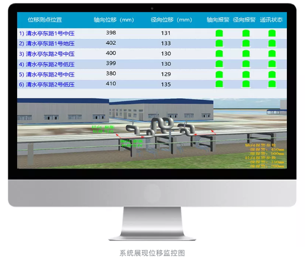 直觀掌握管道位移隨溫度、流量的變化情況,位移超限時觸發報警,輔助供熱管理人員更全面地監控管網的工作情況,保證管網安全穩定運行。