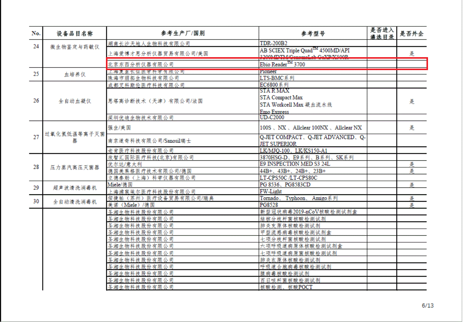 2020年2月25日,北京東西分析儀器有限公司自主研發(fā)生產(chǎn)的 Ebio ReaderTM3700 全自動(dòng)飛行時(shí)間質(zhì)譜系統(tǒng) (MALDI-TOF)入選中國(guó)醫(yī)學(xué)裝備協(xié)會(huì)推薦的《新冠肺炎疫情防治急需醫(yī)學(xué)裝備目錄(第三批)》。