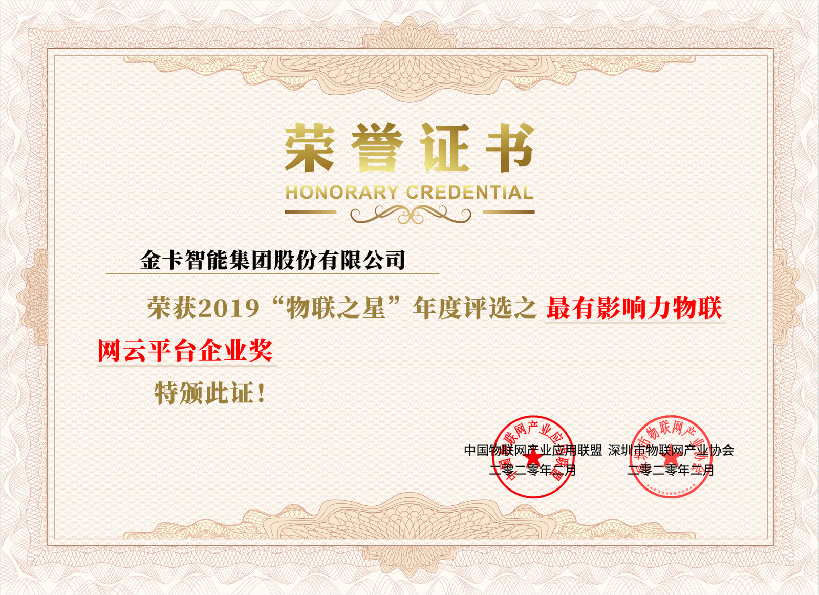2月25日,由中國物聯(lián)網(wǎng)產(chǎn)業(yè)應(yīng)用聯(lián)盟、深圳市物聯(lián)網(wǎng)產(chǎn)業(yè)協(xié)會主辦、物聯(lián)傳媒承辦的2019物聯(lián)之星中國物聯(lián)網(wǎng)行業(yè)年度評選落下帷幕,金卡智能斬獲“最具投資企業(yè)獎”、“最有影響力物聯(lián)云平臺企業(yè)獎”、“最佳智慧能源應(yīng)用方案獎”,楊斌董事長榮獲“年度卓越人物獎”,成為獲獎最多的企業(yè)之一。