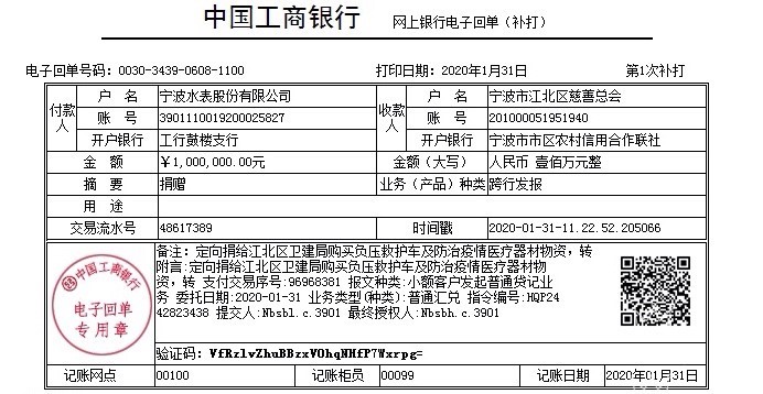 2020年1月31日,寧波水表以公司名義通過江北區(qū)慈善總會(huì)向江北區(qū)衛(wèi)生健康局定向捐款100萬元,并于第一時(shí)間組織力量采購價(jià)值近60萬的KN95防護(hù)口罩發(fā)往急需的武漢等地,與此同時(shí),公司員工紛紛援手,多渠道捐款達(dá)5萬多元,以實(shí)際行動(dòng)支援全國人民打贏這場沒有硝煙的戰(zhàn)爭。