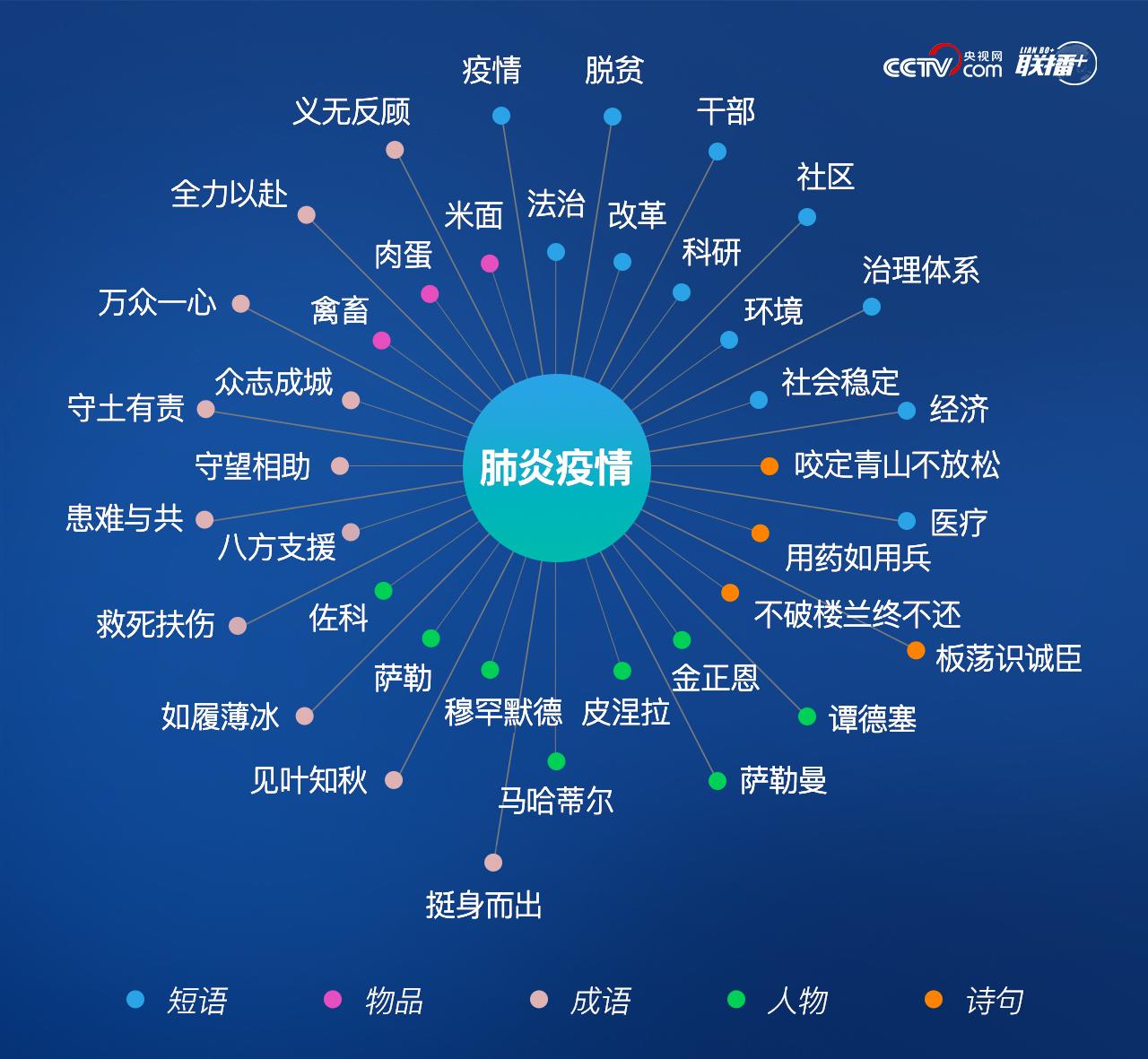 通過圖譜對總書記的講話內容按不同類別進行關聯和細分,從中能看到此次疫情防控中不同切面和概貌。