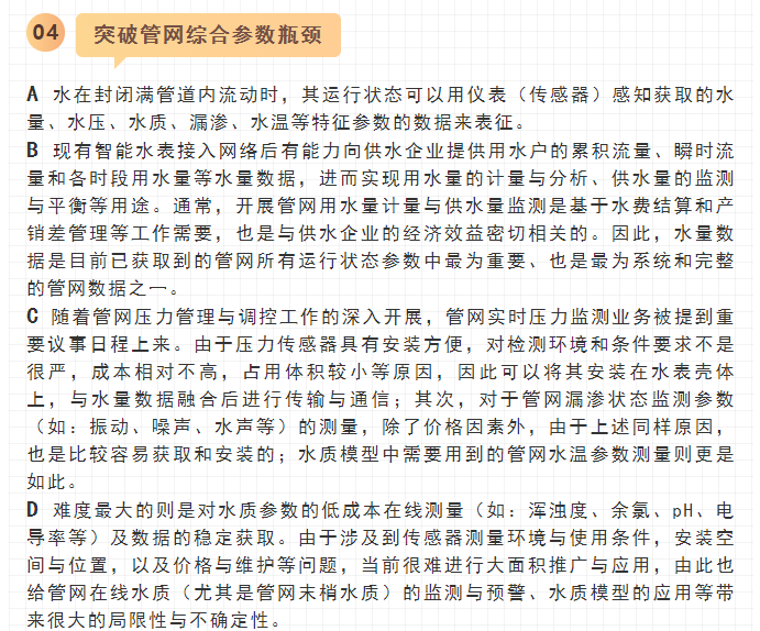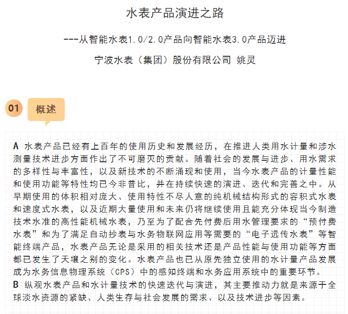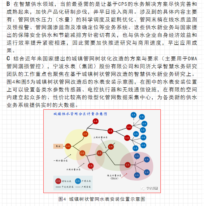 最近,寧水集團已正式啟動新一代智能水表(智能水表3.0)產(chǎn)品及供水新業(yè)務(wù)系統(tǒng)的商用化研發(fā)工作,在原先公司多個博士后課題研究基礎(chǔ)上進行商品化與工程化應(yīng)用研究。可以預期,在不遠將來公司將為供水管網(wǎng)系統(tǒng)提供高性價比的水務(wù)綜合大數(shù)據(jù),為管網(wǎng)現(xiàn)代化管理提供信息來源與決策依據(jù)(這方面詳細內(nèi)容可參見附錄:“水表產(chǎn)品演進之路——從智能水表1.0/2.0產(chǎn)品向智能水表3.0產(chǎn)品邁進”一文)。至2020年初,公司在與浙江大學控制科學與工程學院合作基礎(chǔ)上,又先后與同濟大學環(huán)境科學與工程學院、寧波大學信息科學與工程學院等高校共同簽訂戰(zhàn)略合作協(xié)議,并聯(lián)合成立了“水務(wù)新技術(shù)研發(fā)實驗室”和“水務(wù)信息感知研發(fā)實驗室”,并將與寧波工業(yè)互聯(lián)網(wǎng)研究院等科研機構(gòu)就水務(wù)新型傳感技術(shù)、供水關(guān)鍵核心業(yè)務(wù)等的解決方案展開合作研究。