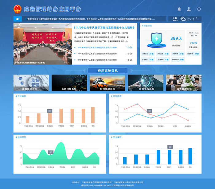 上海中威天安公共安全科技有限公司(漢威科技集團成員企業)結合《全國安全生產專項整治三年行動計劃》行動任務部署和工作要求,創新研發了中威應急管理綜合應用平臺,該平臺基于漢威“物聯網+大安全”的“感·應·云”技術架構,圍繞應急管理事前、事發、事中、事后全過程業務,構建了一套“統一指揮、專常兼備、反應靈敏、上下聯動、平戰結合”的政府應急管理綜合應用平臺。