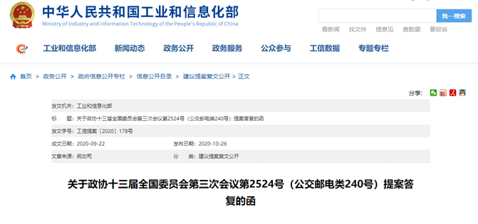 10月26日,工信部在關于政協十三屆全國委員會第三次會議第2524號提案答復的函中表示,下一步,工信部積極考慮將5G、集成電路、生物醫藥等重點領域納入“十四五”國家專項規劃,進一步引導企業突破核心技術,依托重大科技專項、制造業高質量發展專項等加強關鍵核心技術和產品攻關,加強技術領域國際合作,有力有效解決“卡脖子”問題,為構建現代化經濟體系、實現經濟高質量發展提供有力支撐。