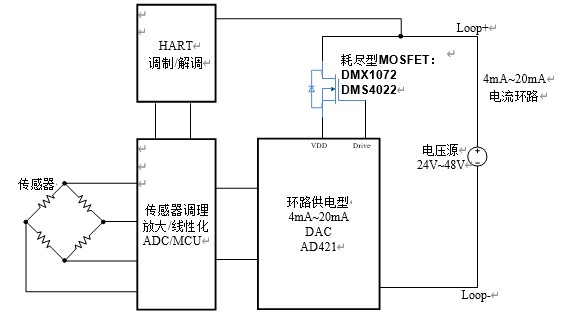 下面,以一款常用的智能變送器為例簡要說明耗盡型 MOSFET 在工業(yè)傳感器、智能變送器中的典型應用。