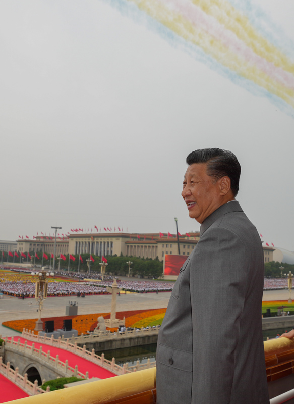 7月1日,慶祝中國共產黨成立100周年大會在北京天安門廣場隆重舉行。中共中央總書記、國家主席、中央軍委主席習近平發表重要講話。這是習近平在天安門城樓上。新華社記者 龐興雷 攝