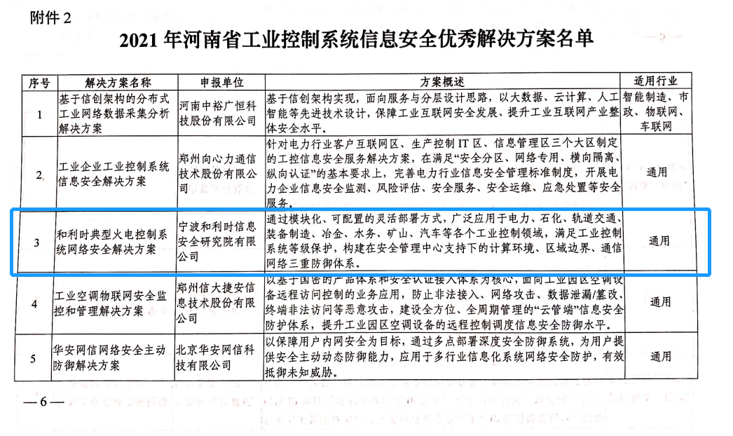 和利時入選河南省工業控制系統信息安全新技術新產品和