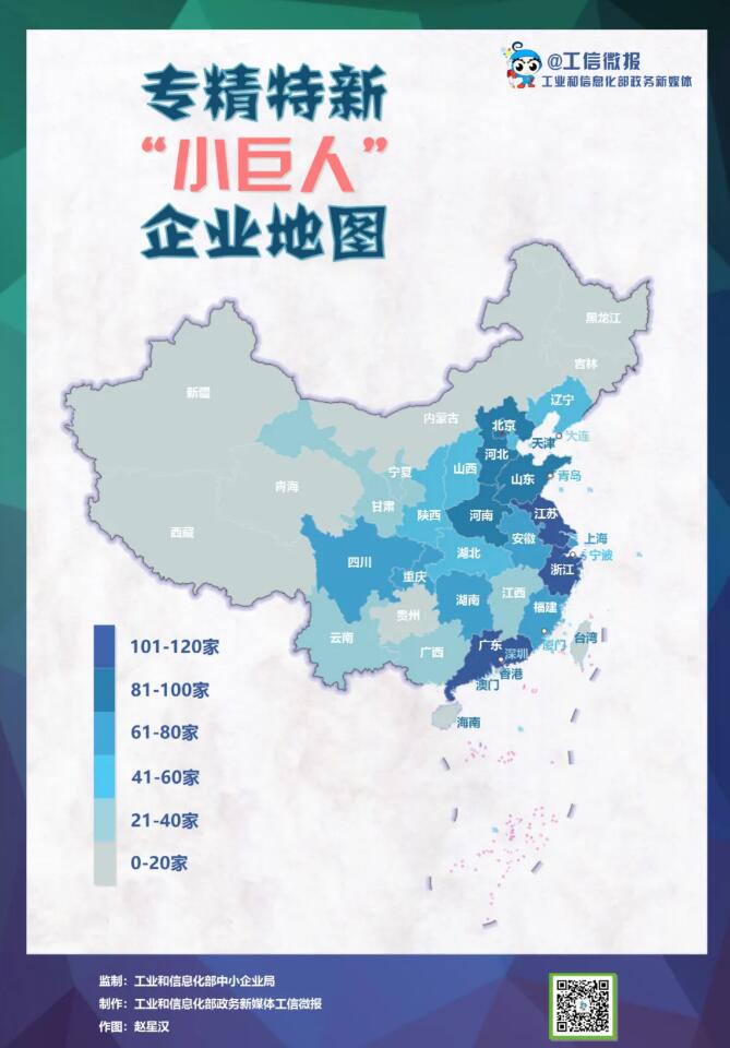 為深入貫徹落實習近平總書記關于“培育一批‘專精特新’中小企業”的重要指示精神,工業和信息化部已培育兩批1832家專精特新“小巨人”企業,充分發揮其示范帶動作用,引導廣大中小企業走“專精特新”發展道路,為提升產業基礎高級化和產業鏈現代化水平、構建現代產業體系提供有力支撐。專精特新“小巨人”企業各地分布情況如下:
