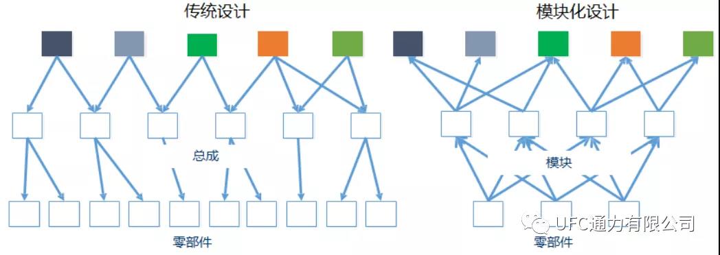 圖1 傳統設計與模塊化設計的比較