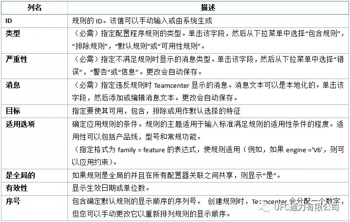 完成配置選項以后,可以根據不同族和特征之間的關系定義配置規則,配置規則定義在“配置器規則”中完成,相關概念的含義如下表所示。只有完成配置規則定義,各不同的特征才能夠被規則約束。