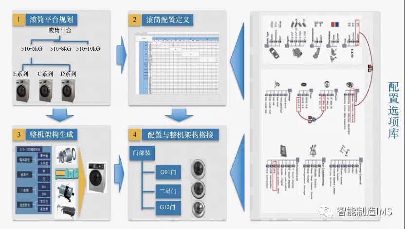 該公司在產品數據管理系統( PDM) 集成應用、數字化工藝管理系統建設( DPM) 及仿生學設計、拓撲優化設計、動力學仿真、流體仿真和參數優化等技術引進的基礎上, 將洗衣電器產品進行模塊化、參數化設計,將產品研發系統與外部銷售系統對接, 當外部銷售配置相應功能后, 內部系統可快速基于產品系列化超級BOM自動生成選配后的制造BOM, 用于生產下達, 滿足個性化定制的快速交付需求。超級BOM 承載的管理模塊如圖4 所示。