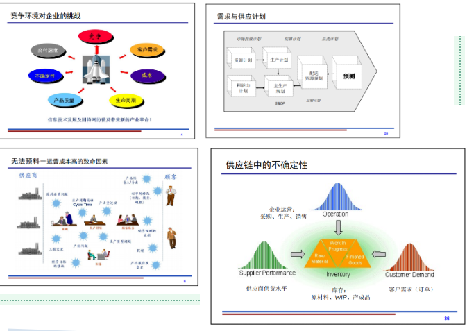 史老師從企業(yè)在經(jīng)營(yíng)上經(jīng)常遇到的問題入手,分析了運(yùn)營(yíng)成本高的致命因素,指出供應(yīng)鏈管理的核心問題就是在提供超常的客戶價(jià)值上幫助企業(yè)創(chuàng)造競(jìng)爭(zhēng)優(yōu)勢(shì)。在內(nèi)部供應(yīng)鏈部分,史老師犀利的指出,傳統(tǒng)的內(nèi)部供應(yīng)鏈沒有用系統(tǒng)和整體的視角產(chǎn)生總體相關(guān)價(jià)值。外部供應(yīng)鏈部分,他指出,從供應(yīng)商到制造商、到配送、到最終用戶,各個(gè)環(huán)節(jié)信息的畸變,導(dǎo)致需求的難以預(yù)測(cè),不能讓生產(chǎn)者對(duì)庫(kù)存、產(chǎn)能等做出準(zhǔn)確的判斷。因此需要一套技術(shù)環(huán)境,來集成“需方”和“供方”的流程,從而減少庫(kù)存水平、縮短供應(yīng)鏈周期、降低供應(yīng)鏈成本。史老師在課堂上還分享了戰(zhàn)略尋源管理、供應(yīng)商管理總流程,還向大家展示了通過功能和戰(zhàn)略兩個(gè)層面的聯(lián)盟達(dá)到改進(jìn)與客戶伙伴關(guān)系的方法。對(duì)于供應(yīng)鏈中的一些不確定性,史老師也從評(píng)估風(fēng)險(xiǎn)發(fā)生可能性、識(shí)別風(fēng)險(xiǎn)來源和評(píng)估風(fēng)險(xiǎn)影響等幾個(gè)角度講解,并給出了風(fēng)險(xiǎn)管理的策略和應(yīng)對(duì)供應(yīng)鏈風(fēng)險(xiǎn)的反應(yīng)機(jī)制。最后史老師用典型案例詮釋了什么是最佳的供應(yīng)鏈管理。
