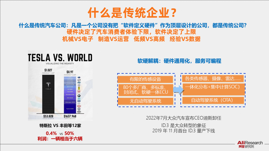 在一次新能源汽車研討論上,一位專家曾提出這樣一個問題:數字時代,什么是傳統企業?他說只要沒有把軟件定義硬件作為頂層設計的公司,都是傳統公司。這個觀點可能有點偏激,但有利于引發我們對數字時代企業轉型問題進行更深入思考。