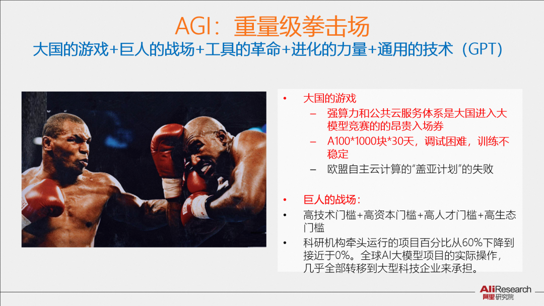 大國的游戲。今天誰有資格站在這個賽道?當你沒有一個龐大的云基礎設施,沒有一個公有云體系,沒有強大算力的時候,就沒有資格進入到這個賽道,公有云和AI的集成能力是大國競爭的入場券。這是一個大國的游戲。