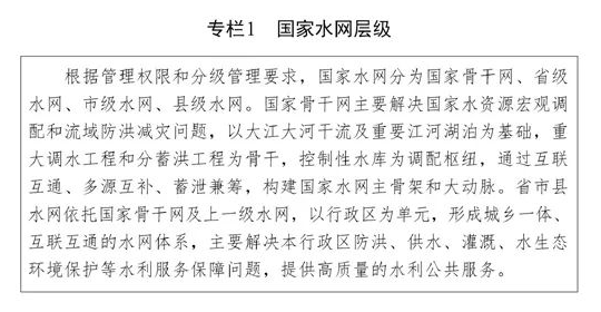 織密國家水網之“目”。結合國家、省區市水安全保障需求,加強國家重大水資源配置工程與區域重要水資源配置工程的互聯互通,推進主要支流和中小河流綜合治理、區域河湖水系連通和引調排水工程建設,形成城鄉一體、互聯互通的省市縣水網體系,改善河湖生態環境質量,提升水資源配置保障能力和水旱災害防御能力。