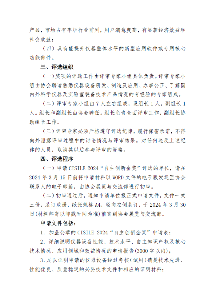 1.CISILE 2024“自主創(chuàng)新金獎”通知原文及評選辦法