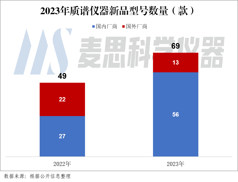 根據公開渠道發布的產品型號進行統計,2023年1-12月共有69款質譜新品上市,包括LC-Q-TOF、ICP-TOF、LC-Q-ET(Astral)、LC-TQ等,新品型號數量同比增長40.8%。