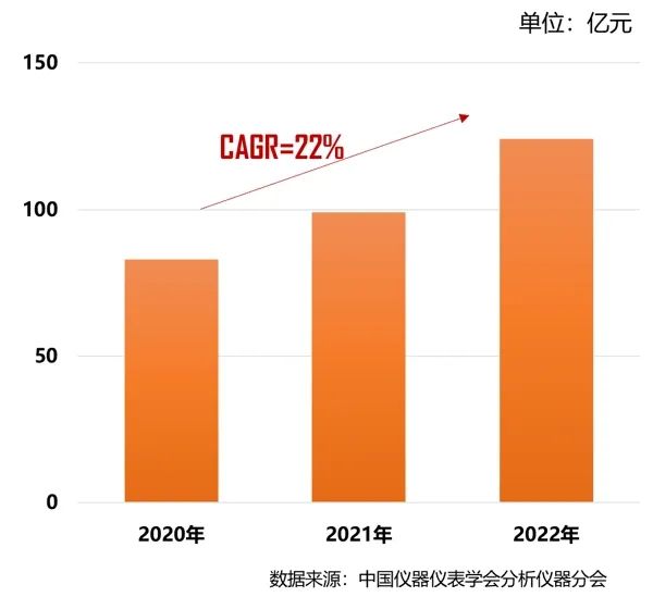 盡管離子阱質譜、磁質譜、傅里葉變換質譜的市場占比較低,但2022年這三類質量分析器質譜儀器的市場增速較快,2020-2022年均復合增長率高于30%,其中離子阱質譜的增速最高,主要貢獻來自于離子阱液質聯用儀、便攜式離子阱質譜。