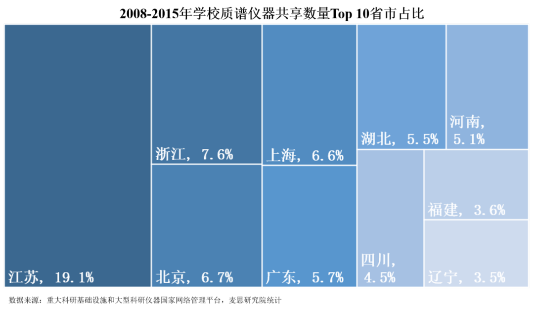 根據(jù)麥思研究院統(tǒng)計(jì),2008-2015年共享平臺(tái)上約有5600臺(tái)質(zhì)譜儀器開始啟用,其中約2000臺(tái)來(lái)自各類學(xué)校。