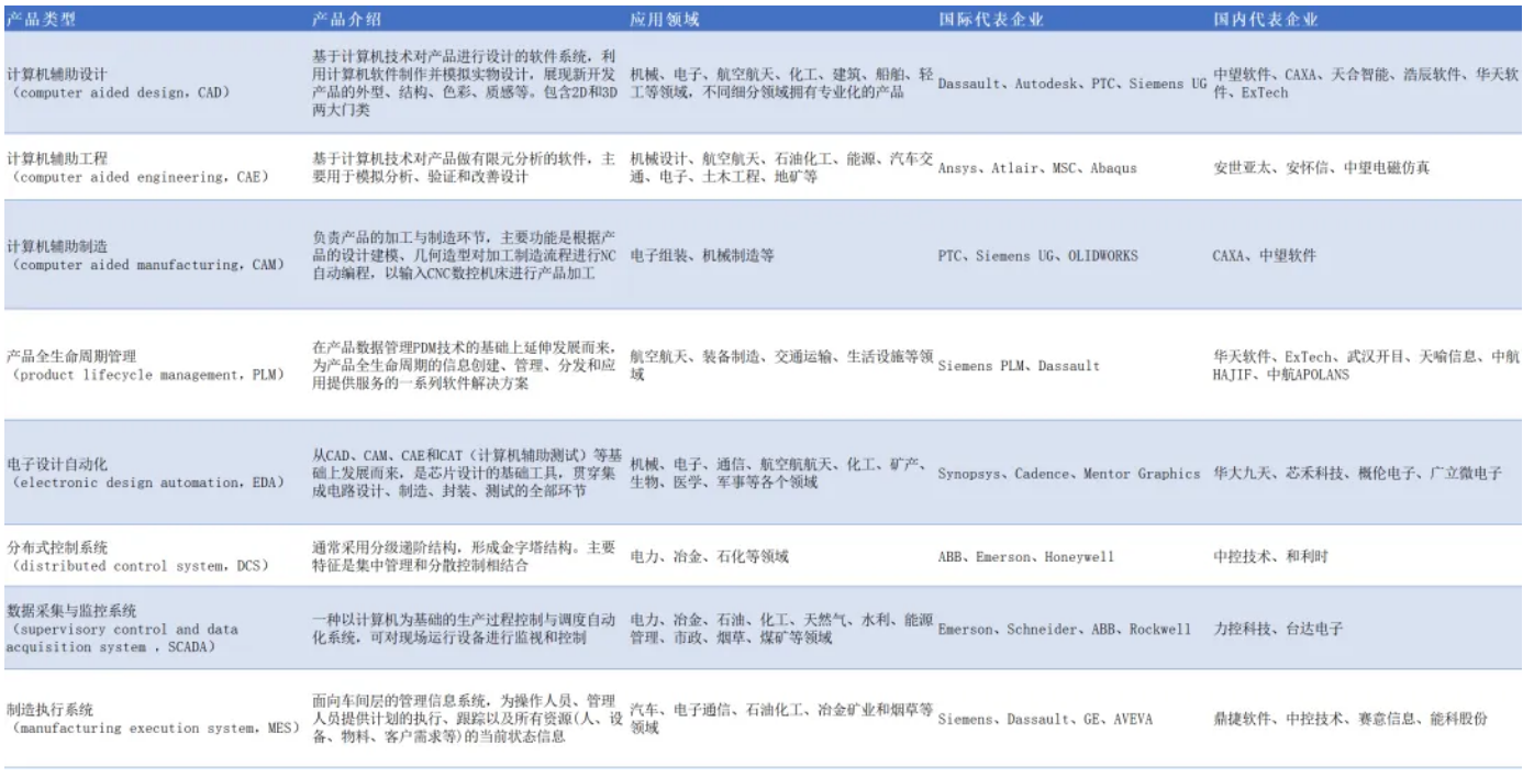中游:軟件產品開發中游環節是工業軟件產業鏈的核心,包括研發設計軟件、生產控制軟件、業務管理軟件及嵌入式軟件等。這些軟件產品在工業制造過程中發揮著關鍵作用,如提升產品設計效率、優化生產流程、提高管理水平和實現設備控制等。在這個領域,西門子和達索系統等公司憑借其強大的產品線和技術創新能力,成為全球工業軟件市場的領導者。