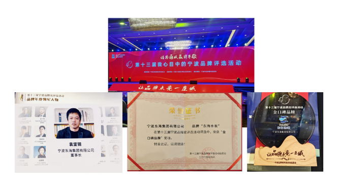4月29日,寧波東海集團(tuán)有限公司在第十三屆寧波品牌雙評(píng)選活動(dòng)中榮獲“金口碑品牌”和“品牌年度領(lǐng)軍人物”兩項(xiàng)大獎(jiǎng)。