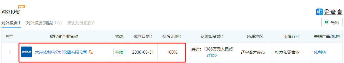 值得注意的是,20233月蘇州依利特科技有限公司注冊成立,企查查顯示這家公司100%控股了大連依利特分析儀器有限公司。這也就意味著,依利特的運營主體變成了剛剛在蘇州注冊成立的這家公司。