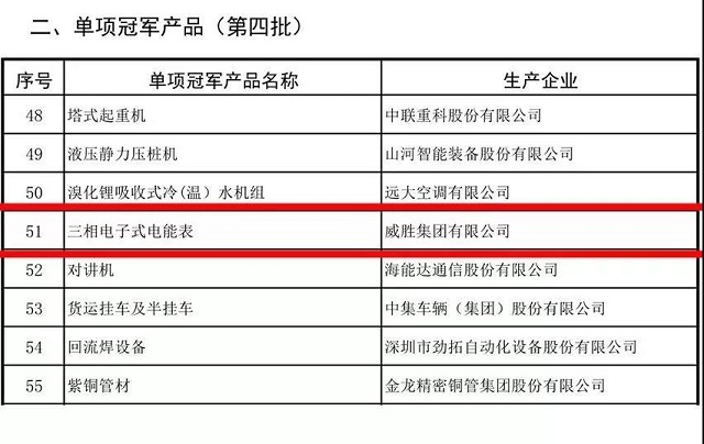 威勝集團三相電子式電能表成功入選第四批制造業單項冠軍產品。