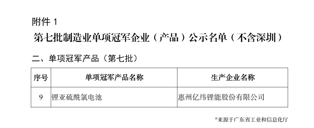 此次成功入選“國家級制造業單項冠軍產品”,是對億緯鋰能鋰亞電池深厚的行業積淀、先進的技術水平、領先的市場地位、精益的質量水平的高度認可。