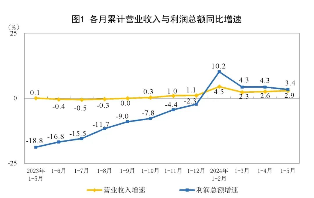1—5月份,全國規(guī)模以上工業(yè)企業(yè)實(shí)現(xiàn)利潤總額27543.8億元,同比增長(zhǎng)3.4%(按可比口徑計(jì)算)。