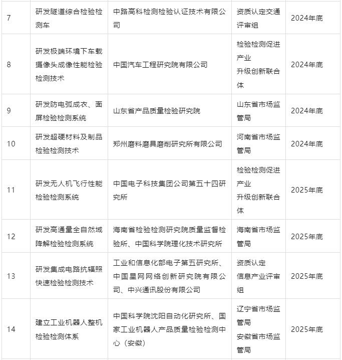 1. 檢驗檢測促進產業優化升級行動重點項目