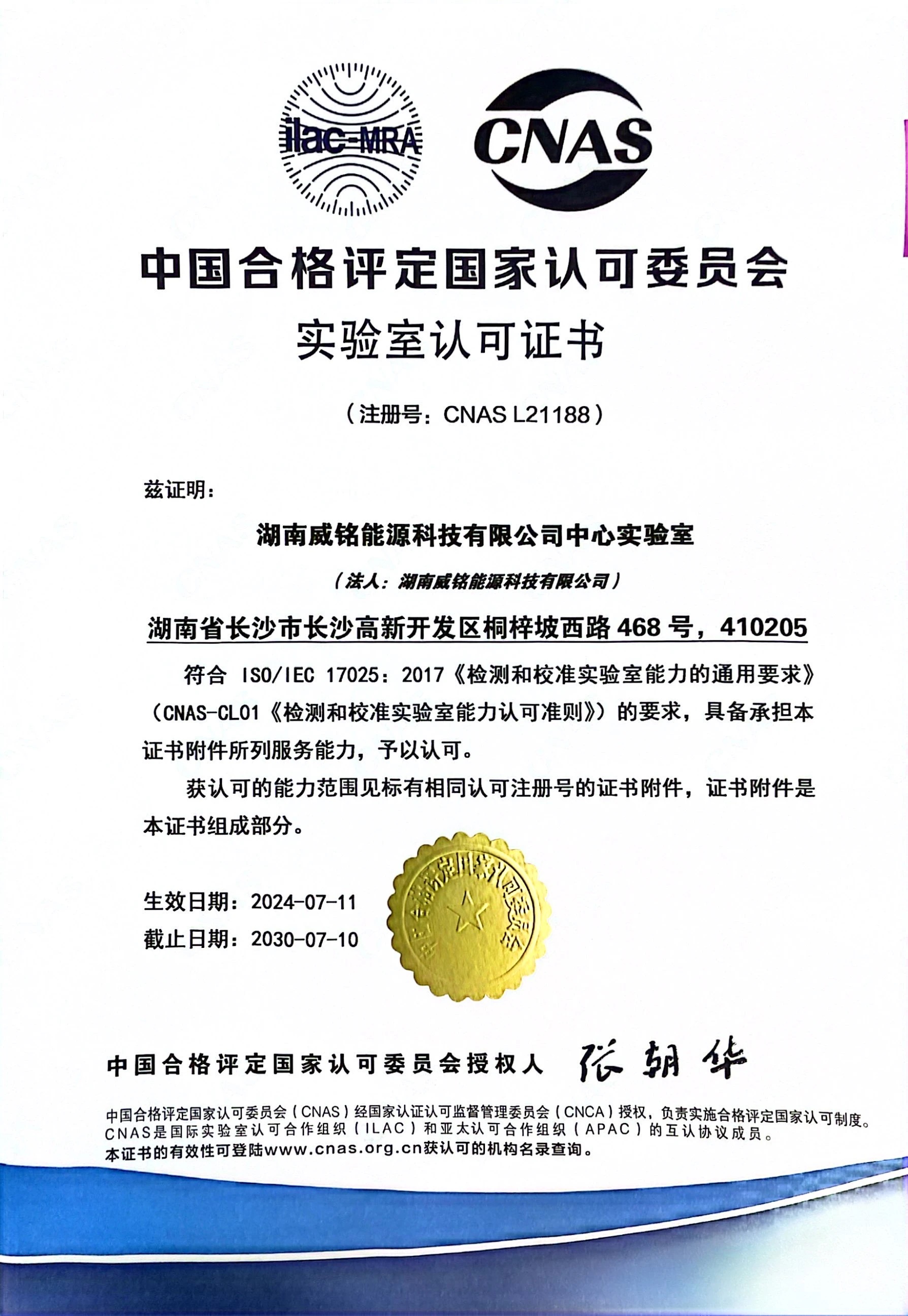 威勝信息旗下威銘能源榮獲CNAS實驗室認證