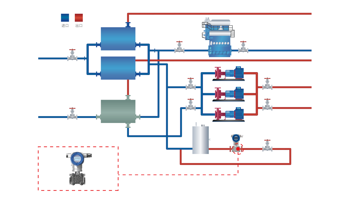 船舶壓載水管理系統,是對船舶排放海里的壓載水進行處理的裝置。系統包括控制單元、過濾器、壓載水泵、壓載水管路、壓載艙及有關閥件等。壓載水管理系統需要測量進水流量、水箱液位和系統壓力。由于船舶長期在海水、河水等相對惡劣的環境下航運,海水腐蝕、船艙內常年潮濕,壓力變送器安裝在管道和罐體上,需要克服海洋微生物、沉積物等對壓力測量帶來的影響。