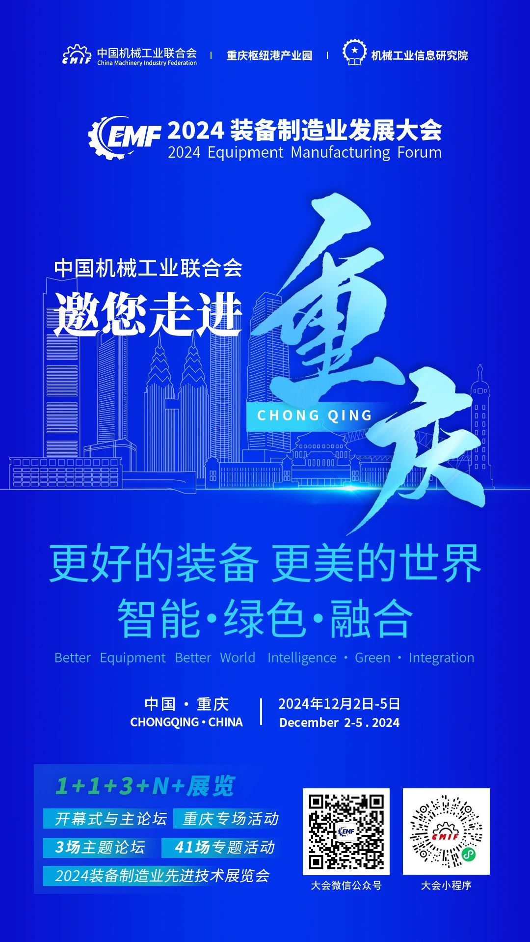 在這里,有裝備制造業(yè)的最新成果!在這里,有關(guān)于行業(yè)發(fā)展的最新趨勢!在這里,有你一直期待的未來合作伙伴!即將于12月2日-5日在重慶舉辦的2024裝備制造業(yè)發(fā)展大會(huì),是我國裝備制造業(yè)迄今為止首次舉辦的大型、系統(tǒng)、綜合、涵蓋全產(chǎn)業(yè)鏈的產(chǎn)業(yè)盛會(huì)。