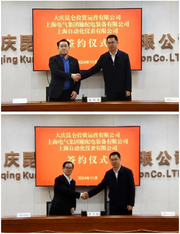 為了貫徹落實中國石油天然氣集團公司(以下簡稱“中國石油”)與上海電氣集團在2024年11月6日的會談精神,進一步聚焦國家“雙碳”目標和能源產(chǎn)業(yè)綠色發(fā)展需求,時隔兩周,上海電氣集團輸配電裝備有限公司(以下簡稱“電氣輸配電”)攜手上海自動化儀表有限公司(以下簡稱“上海自儀”)赴黑龍江省大慶油田訪問交流,并分別與大慶昆侖投資運營有限公司(以下簡稱“大慶昆投”)簽署框架合作協(xié)議。