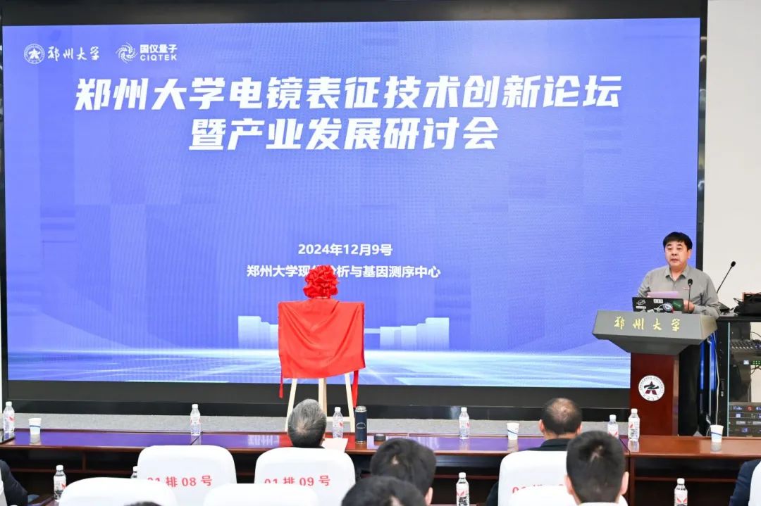 國(guó)儀量子董事長(zhǎng)賀羽在致辭中以“國(guó)儀量子,為國(guó)造儀”為主題,結(jié)合《科學(xué)儀器的國(guó)產(chǎn)化之路》報(bào)告,回顧了國(guó)儀量子的創(chuàng)辦歷程以及在高端科學(xué)儀器工程化和產(chǎn)業(yè)化方面取得的突出成就。他表示,希望通過與鄭州大學(xué)的深入合作,在學(xué)校領(lǐng)導(dǎo)和業(yè)內(nèi)專家的大力支持下,共同推動(dòng)國(guó)產(chǎn)電子顯微鏡及高端科學(xué)儀器產(chǎn)業(yè)的快速發(fā)展。