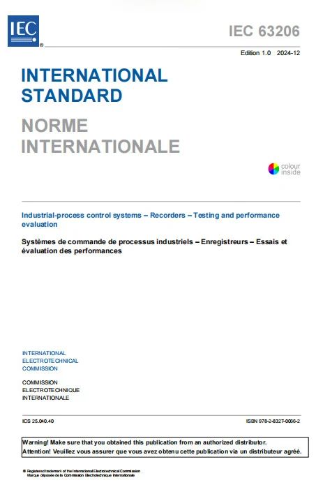 由自儀院主導(dǎo)制定的國際電工委員會(huì)(IEC)國際標(biāo)準(zhǔn)IEC 63206:2024《工業(yè)過程控制系統(tǒng) 記錄儀 試驗(yàn)和性能評定》于2024年12月正式發(fā)布。
