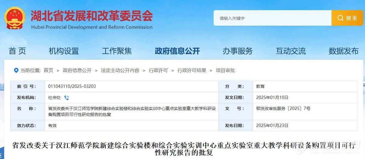 日前,湖北省發(fā)展和改革委員會發(fā)布了《關(guān)于漢江師范學(xué)院新建綜合實驗樓和綜合實驗實訓(xùn)中心重點實驗室重大教學(xué)科研設(shè)備購置項目可行性研究報告的批復(fù)》。該項目總投資5793萬元,用于重大科研儀器設(shè)備購置,資金來源為除爭取中央投資外,其余由學(xué)校自籌解決。擬更新設(shè)備共30臺(套)【清單表附表】,其中化學(xué)與環(huán)境工程學(xué)院生物資源與生態(tài)環(huán)境保護(hù)實驗室更新設(shè)備22臺(套)、物理與電子工程學(xué)院新型功能材料制備與物性研究中心更新設(shè)備8臺(套)。淘汰同品目設(shè)備38臺(套)。