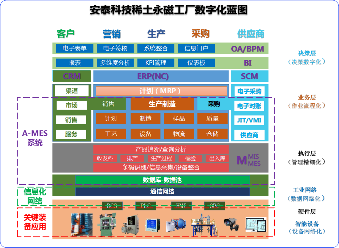 安泰科技股份有限公司(以下簡稱安泰科技)成立于1998年,是全球先進金屬新材料領域的引領者。近年來,公司堅持以智能制造為中心,通過實施1+3+N數字化轉型發展規劃,建設1個智慧決策中心、3個主管理平臺、N個專業管理系統,推動先進制造技術與信息化管理系統深度融合,實現產業的數字化轉型、智能化升級。2024年,安泰科技的高品質稀土個性化定制智能工廠成功入選工信部第一批卓越級智能工廠。
