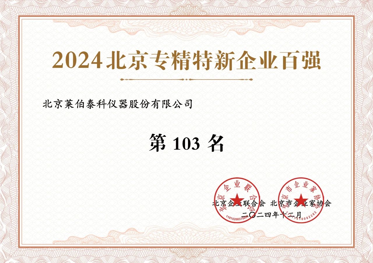 在這份榮譽榜單上,萊伯泰科憑借其在科技創新、產品質量、市場拓展等方面的表現,成功榮登“2024北京專精特新企業百強”之列。這不僅是對萊伯泰科過去努力的肯定與認可,更是對公司未來發展潛力的高度期許。萊伯泰科將繼續秉承創新精神,加大研發投入,不斷提升自主創新能力,為國產科學事業的蓬勃發展貢獻更大的力量。