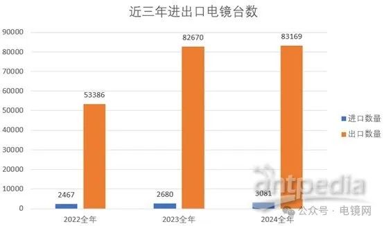 2022-2024年,電子顯微鏡(不含光學顯微鏡)進口數量從2467臺增至3081臺,復合增長率達11.8%;出口數量從53386臺增加至83169臺,復合增長率為55.79%。