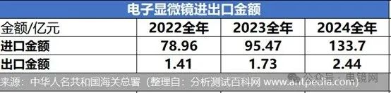 2024 年中國電子顯微鏡進出口盤點:繼續增長超1