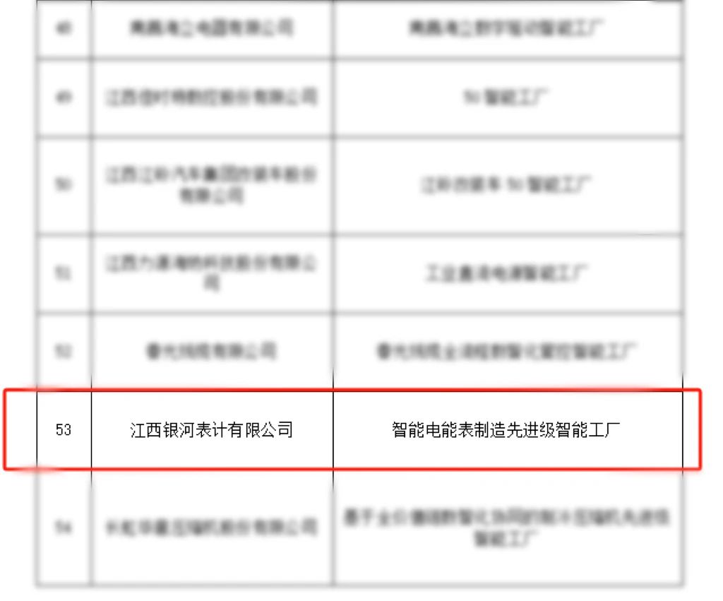 近日,江西省工業(yè)和信息化廳發(fā)布了2025年度省級智能工廠公示名單,江西銀河表計有限公司成功入選,榮獲“智能電能表制造先進級智能工廠”稱號。這一榮譽充分彰顯了公司在智能制造領域的綜合實力與技術領先地位。